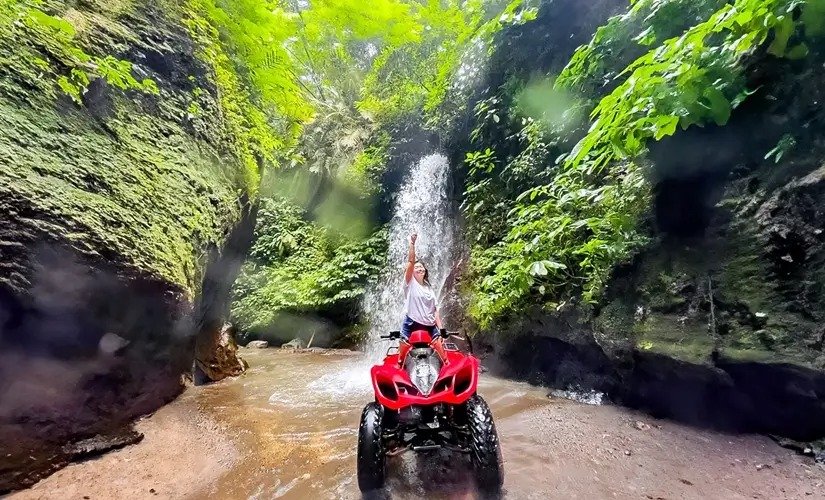 The main highlight is the journey through a natural cave and hidden waterfall, an exclusive trail that sets Kuber Ubud apart from any other ATV track in Bali. Surrounded by tropical scenery and the sounds of nature, you’ll feel the true spirit of adventure as you conquer every challenging path.